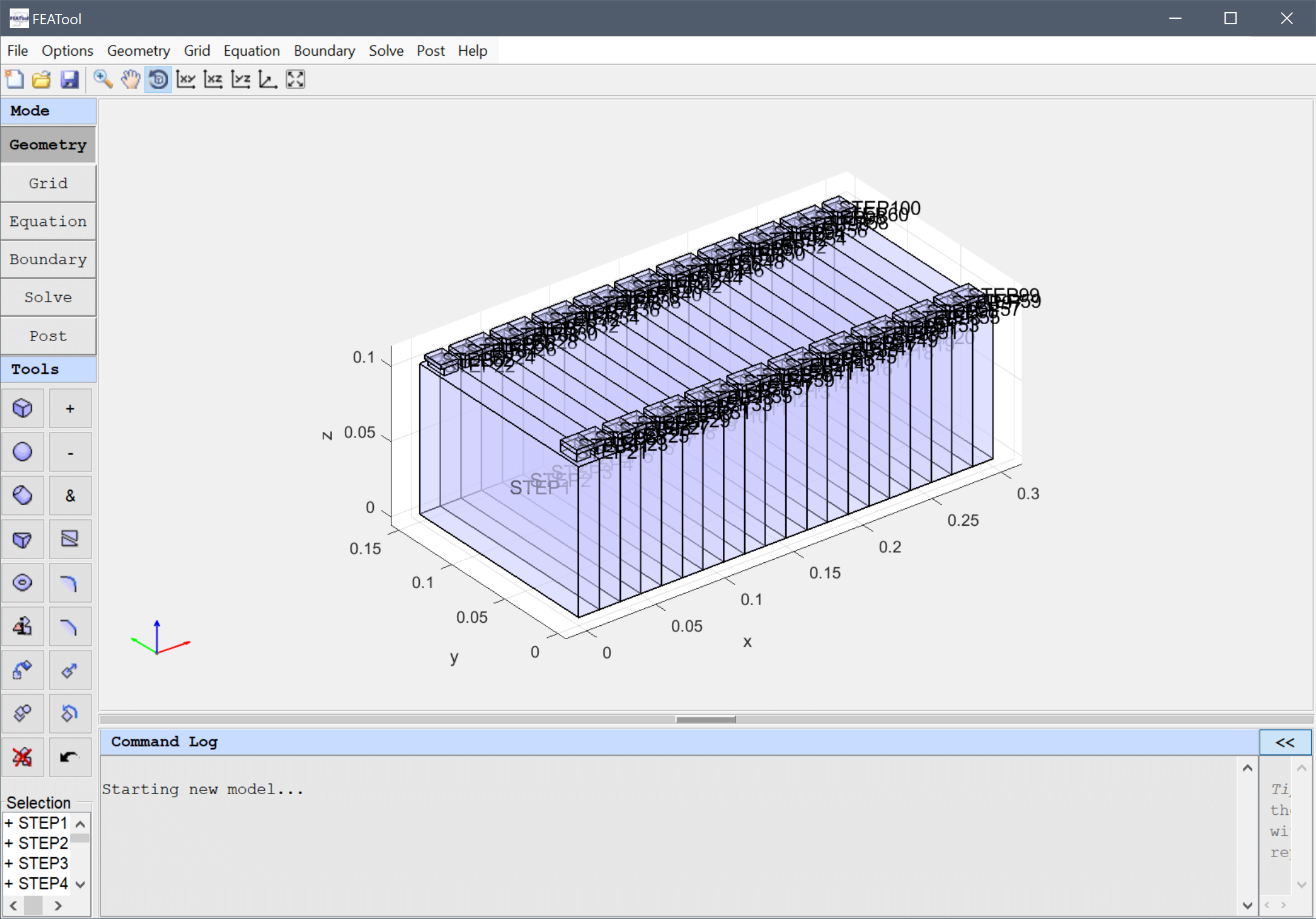 Although the geometry can be generated with the built-in CAD tools, in this case we will import the geometry from a STEP CAD file. (This file can be found as /tutorials/02_Heat_Transfer/battery_pack.step of the toolbox distribution folder.)